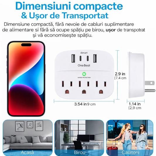⚡ Extender Priză cu USB & Protecție 🔋