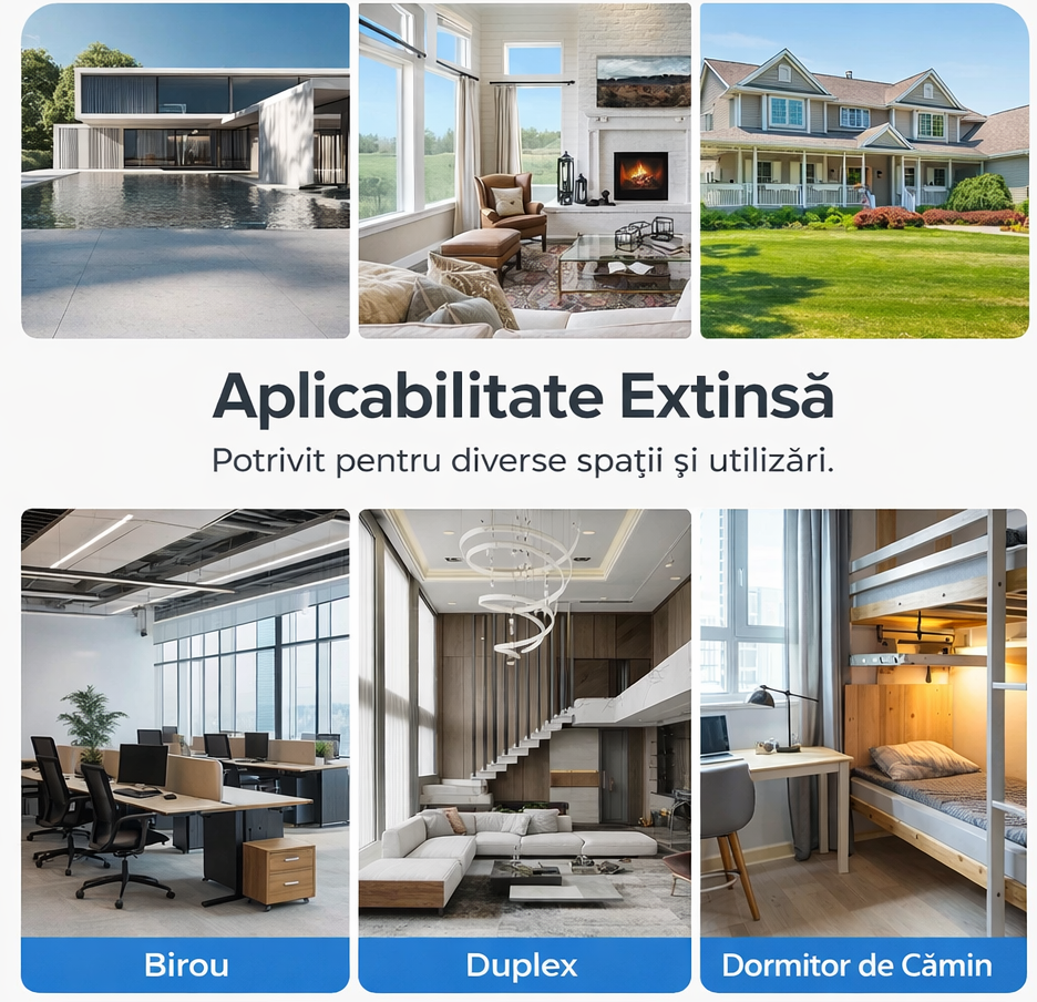 Extenderul oferă acoperire extinsă pentru spații mari, fiind ideal pentru apartamente, case sau birouri, cu semnal puternic ce trece ușor prin pereți și asigură Wi-Fi stabil pe mai multe niveluri.